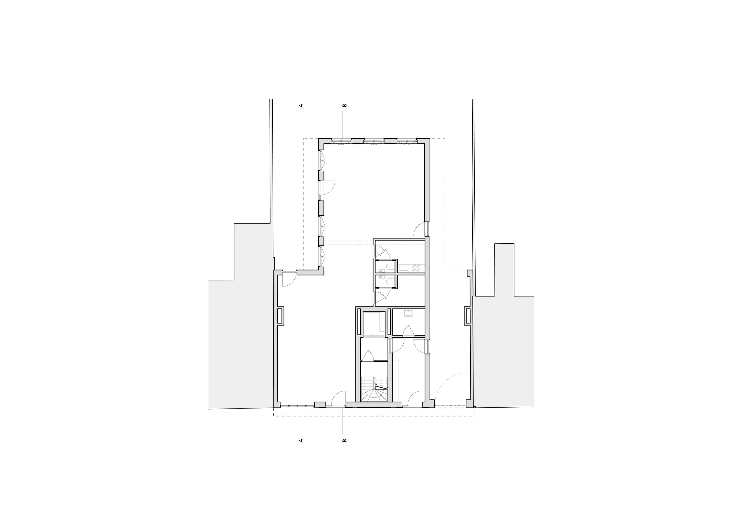 Architectuur kan bijdragen aan de samenleving door maatwerk te leveren dat zowel cultureel als maatschappelijk relevant is, met aandacht voor duurzaamheid en betaalbaarheid. In dit project wordt het bestaande hoofdgebouw aan de straatzijde afgebroken en vervangen door een nieuwbouw met woonfunctie en een handels- of kantoorruimte op het gelijkvloers. Er blijft een doorgang naar de achterliggende zone, waar het bijgebouw wordt gesloopt om ruimte te maken voor groen, een fietsenstalling en parkeerruimte voor vijf auto's.